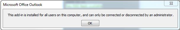 Trying to remove the add-on from the Tools > Trust center > Add-ins > Manage: COM Add-ins [ Go ] created the following error.